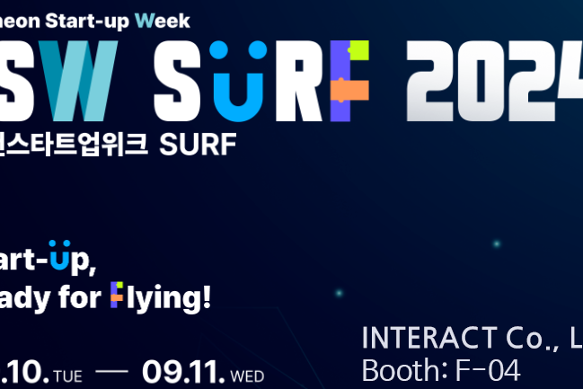 Visit ISF SURF2024 to experience Incheon area startups’ innovative technologies and service ideas. INTERACT participates ISW SURF2024. Do not miss the opportunity to experience No-code XR content creation system (ETXR). Event name: Incheon Startup Week SURF2024 (ISW SURF2024) Date: September 10 (Tue) ~ 11 (Wed), 2024 Time: 10:00AM ~ 5:00PM Location: Songdo Convensia Exhibition…